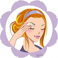 6、在上眼皮从眼头至眼尾用海绵轻轻地来回滑过一次。