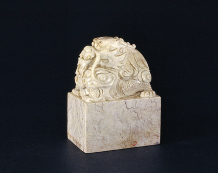 | 青玉“五经萃室”印,清乾隆,印面3.2cm×3.4cm,通高7cm。