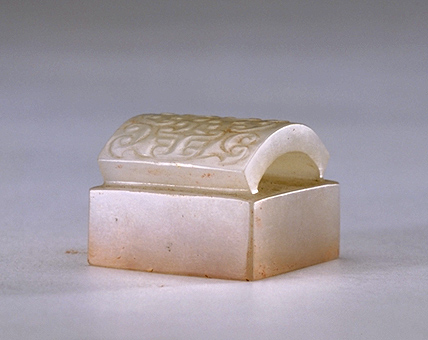 印白玉质,瓦钮。印文字体为篆书,白文,右上起顺读“南康王章”四字。印钮为弧拱形覆瓦状,宽与印台等齐,瓦面满琢精美的勾莲纹。 此印为明代托名南朝封王玺印之作。印文中的“南康王”在南朝时有数人。一是齐武帝萧赜的第十九子,名萧子琳,字云璋,永明八年(490年)由宣城王改封为南康王,永泰元年(498年)被杀,年仅14岁,成为皇室斗争的牺牲品。二是齐明帝萧鸾第八子,名萧宝融,字智昭,永元元年(499年)由随郡王改封为南康王,东昏侯永元三年(501年)三月,南康王宝融在江陵即帝位,成为齐和帝,也即南朝齐政权的最后一个皇帝。三是南朝梁政权第一个皇帝梁武帝萧衍的第四子,名萧绩,字世谨,天监八年(509年)封南康郡王,大通三年(529年)病故,时年25岁,其子萧会理嗣,遇害于侯景之乱。(来源:新华网) |